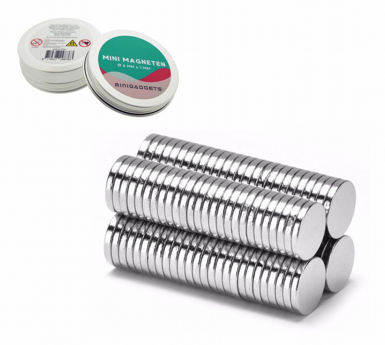 Deze magneten van het merk Minigadgets zijn van zeer hoge kwaliteit en zijn een van de sterkste in zijn soort. De magneten hebben een magnetiseringsgraad van N35. De magneten bieden daarom ook een sterke kleefkracht en zijn dan ook erg geschikt voor het ophangen van zware documenten aan een magneetbord of koelkast. De nikkelcoating zorgt voor een mooi glanzend, zilverkleurig effect waardoor deze magneten er goed uit zien.